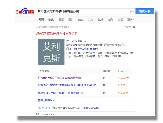 常州艾利克斯電子科技有限公司 選擇入駐平臺:百度愛采購 入駐背景:常州艾利克斯電子科技有限公司成立于2015年。 主營:包括電子產品的研發(fā)、銷售;計算機軟硬件的銷售及技術開發(fā)、技術咨詢、技術服務。 企業(yè)效果: 截止2019年9月9日,只百度愛采購平臺的曝光量已經(jīng)累計1044.84萬,日點擊次數(shù)已經(jīng)上百,詢盤量持續(xù)穩(wěn)定。