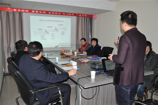 席間洛陽市青峰網絡科技有限公司黃偉總經理向各位領導就青峰的發展歷程及主營業務進行了細致的講解。