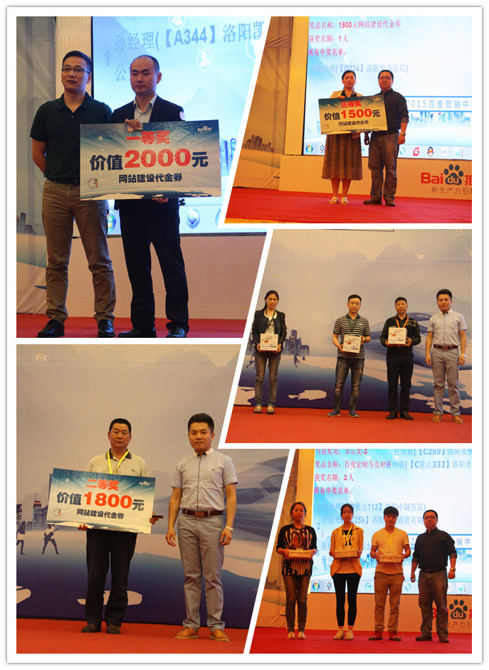 在會議進(jìn)行當(dāng)中,我們也設(shè)置了幸運(yùn)抽獎環(huán)節(jié),由百度公司渠道部區(qū)域總經(jīng)理董榮華先生,百度公司渠道部區(qū)域總監(jiān)郭曉鵬先生和百度公司市場部區(qū)域經(jīng)理劉方豪先生分別抽取了參會的幸運(yùn)朋友,同時送上了百度的精美禮品,分別是三等獎價值一千五百元的網(wǎng)站建設(shè)代金券、二等獎價值一千八百元的網(wǎng)站建設(shè)代金券和一等獎價值兩千元的網(wǎng)站建設(shè)代金券各一個,更有幸運(yùn)獎共九名獲得百度馬克對杯、小熊酸奶機(jī)、百度發(fā)財熊u盤。